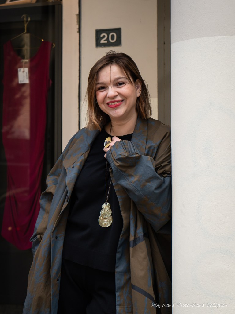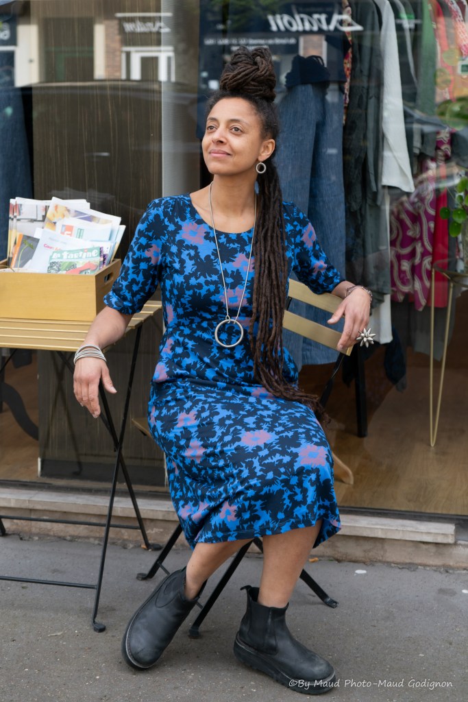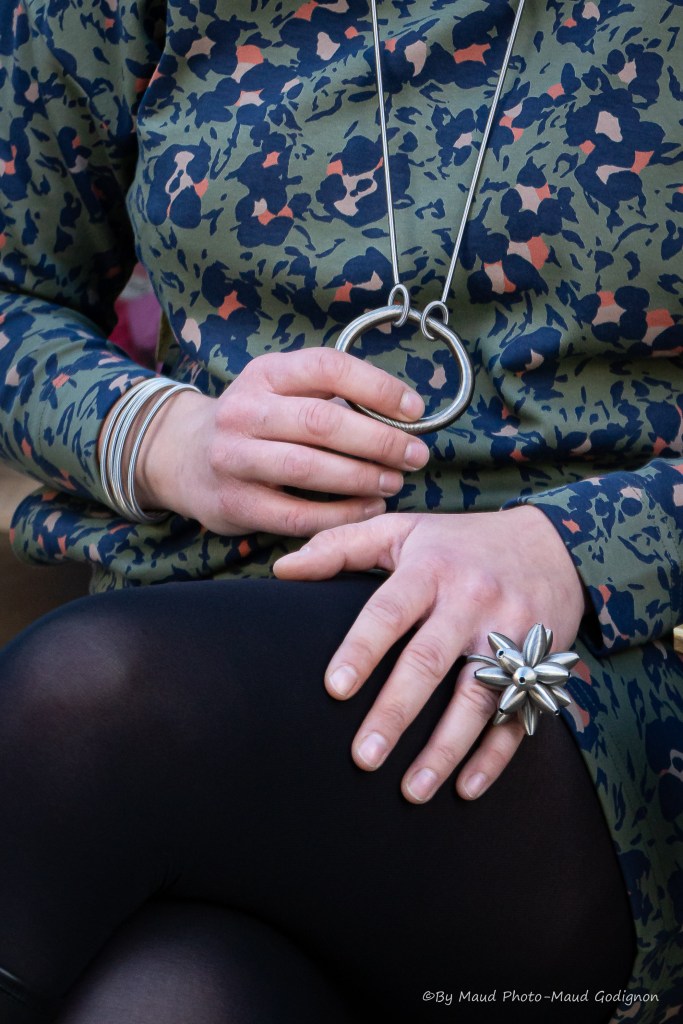 Robe MaOlivian Masai – Boucles d’oreilles Bauhaus 02 Big et Bague Circle small Sophie Terriรจre – Collier Nยฐ4, Collier Chapelet, Sautoir Pop et Bracelet Twist La Mollla Tiziana Redavid