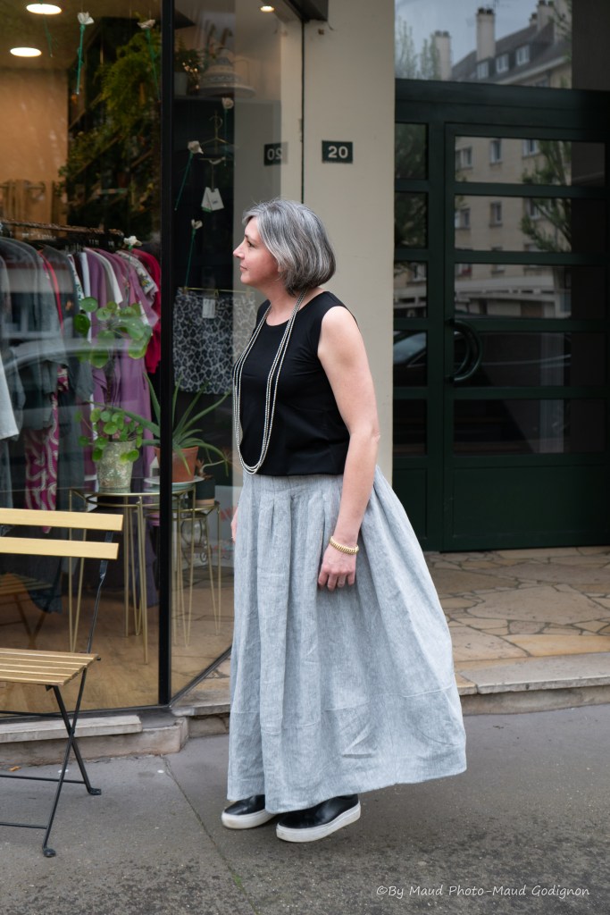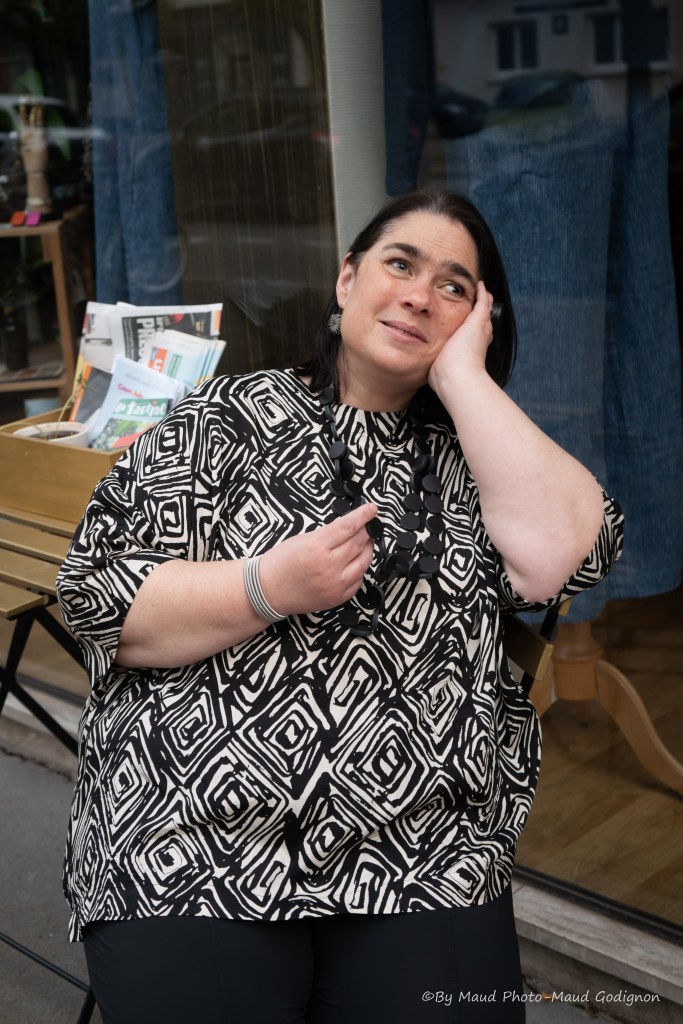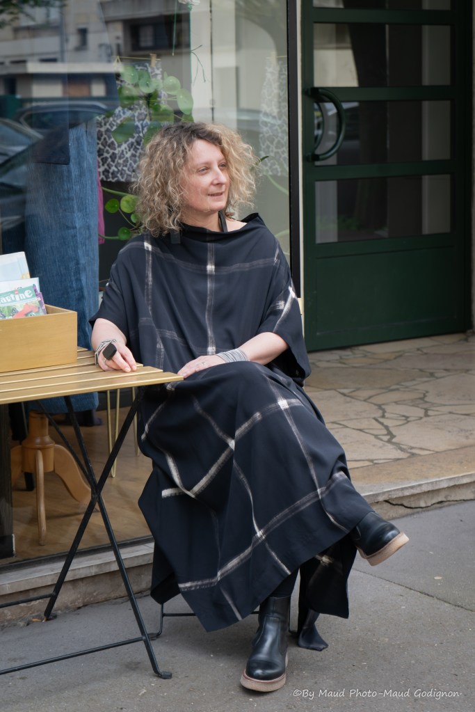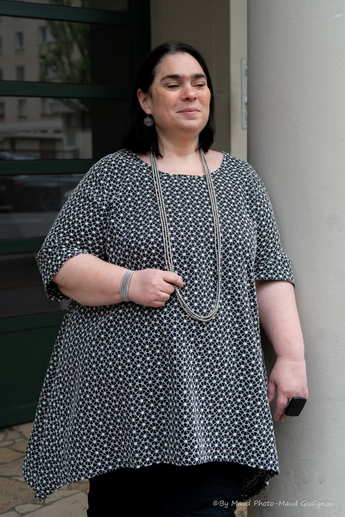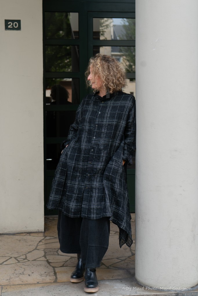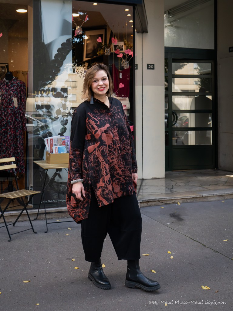 Tunique Moyuru – Pantalon Filip Sophie Cรฉpiรจre – Boucles d’oreilles Block 04 Sophie Terriรจre
