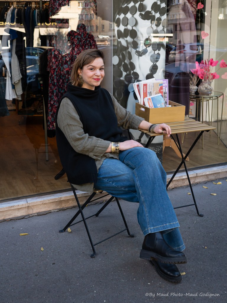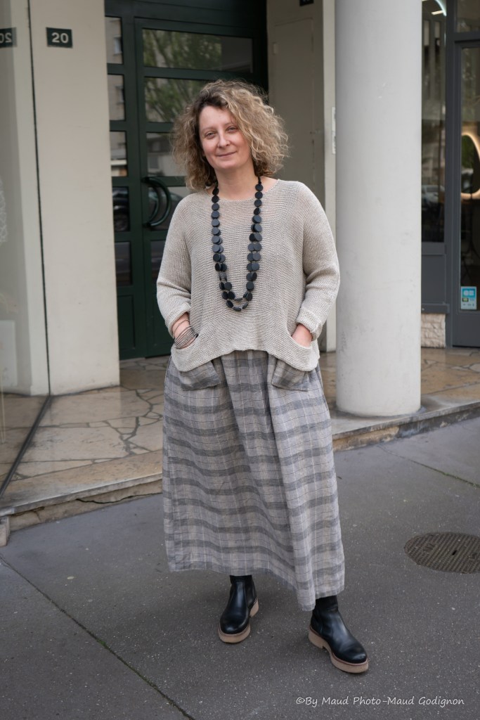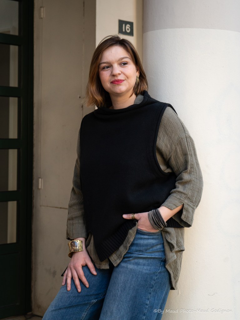 Pull Sophie Cรฉpiรจre et pantalon Grizas – Collier La Mollla Tiziana Redavid et bracelet Marie Paule Thuaud