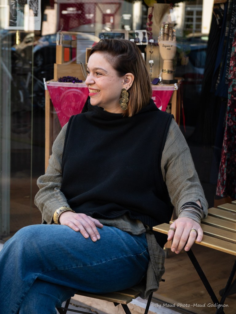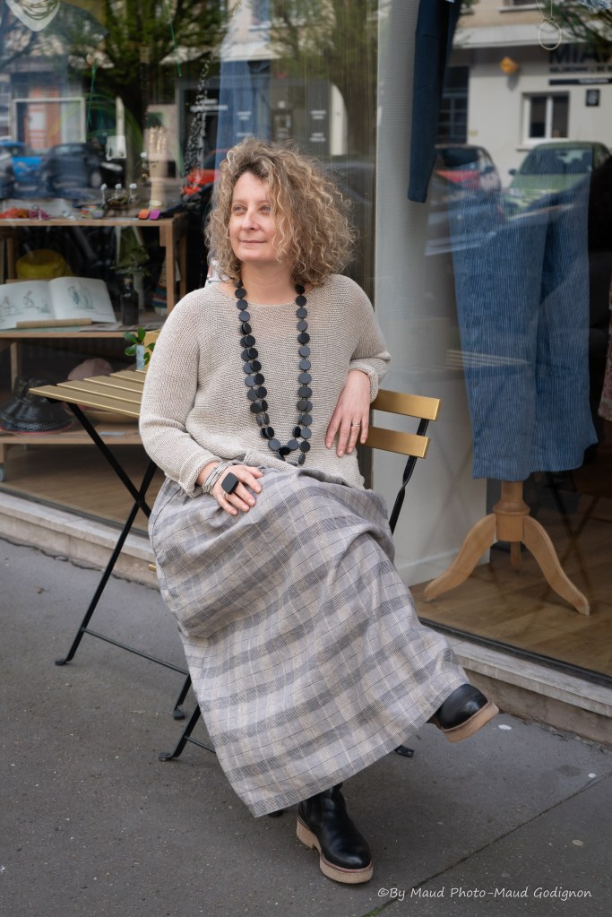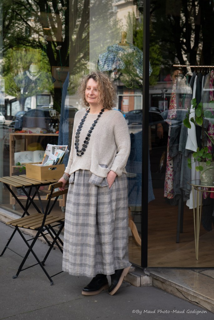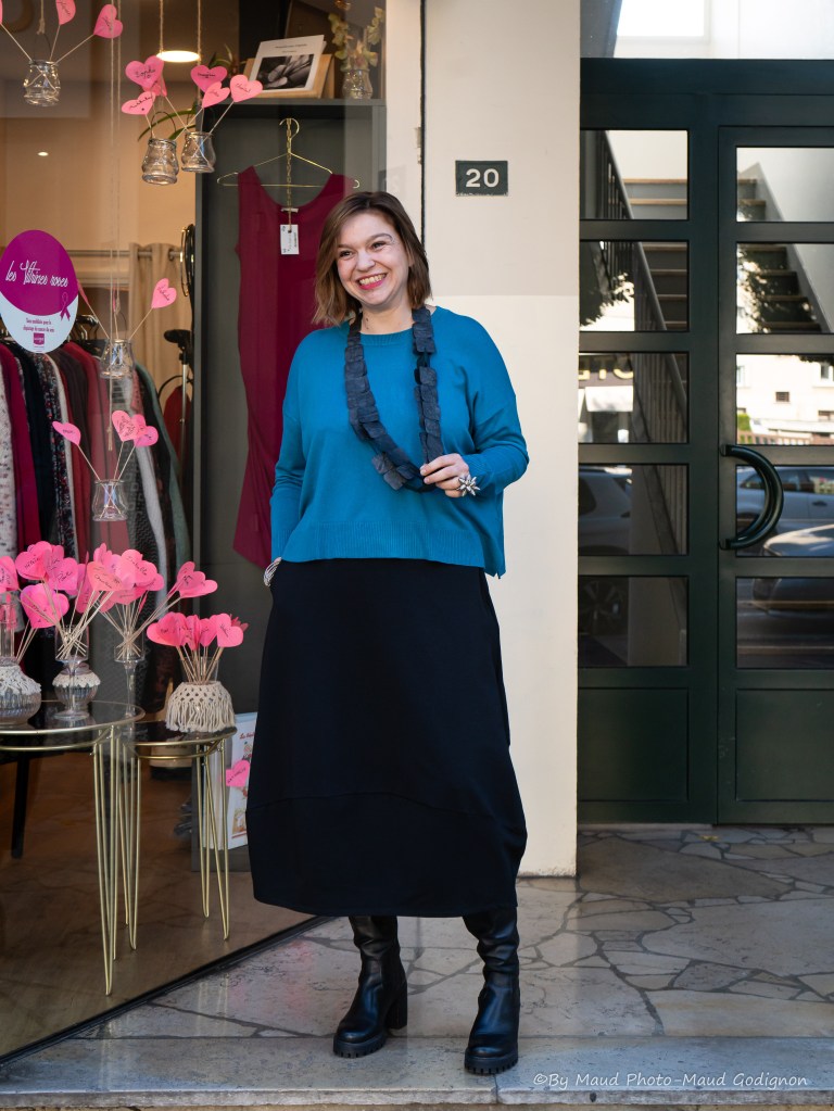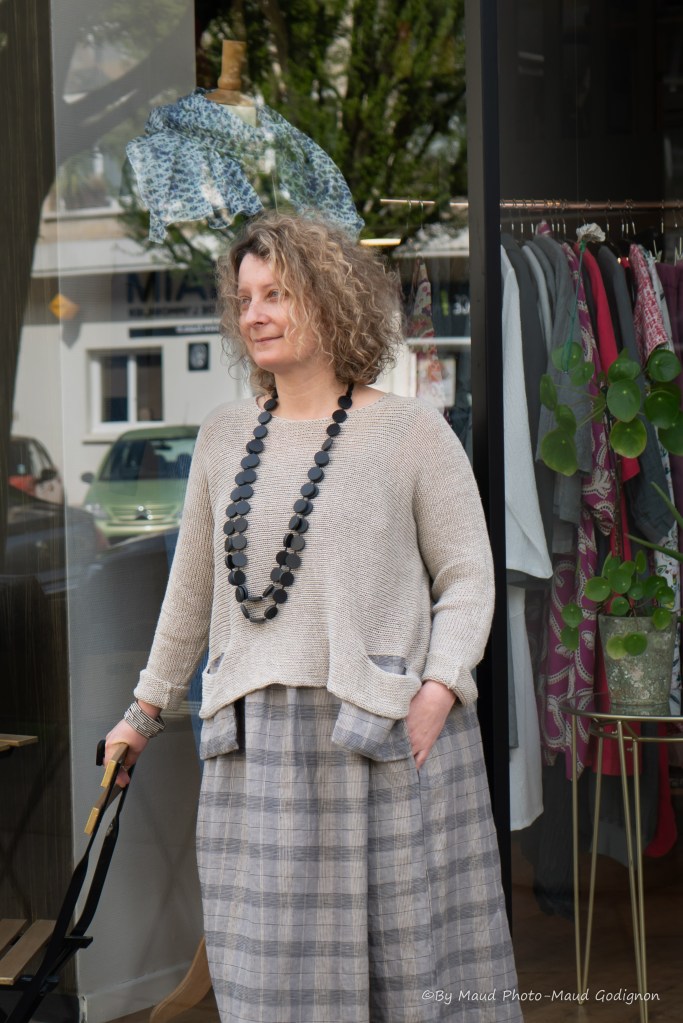 Pull Masai, pantalon G!ozรฉ et manteau Moyuru – Bijoux Marie Paule Thuaud