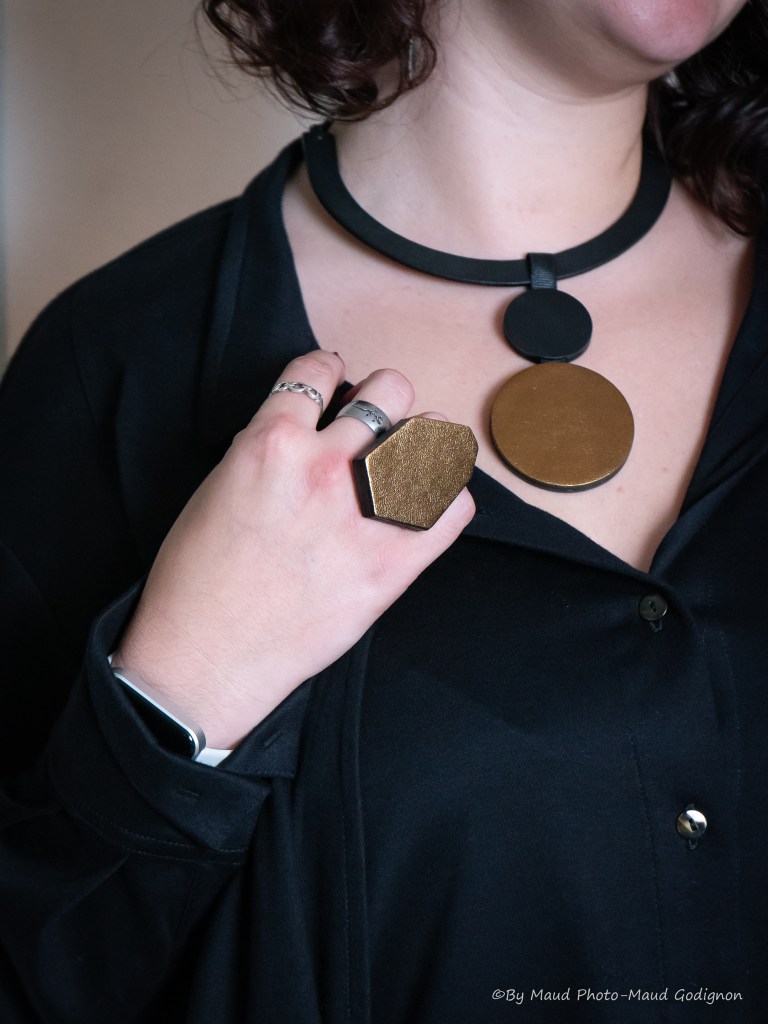 Robe MaNeva Masai – Collier Modul-R Duo Circle et Bague Barok Big Sophie Terriรจre
