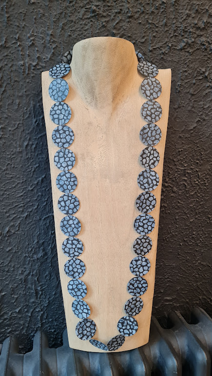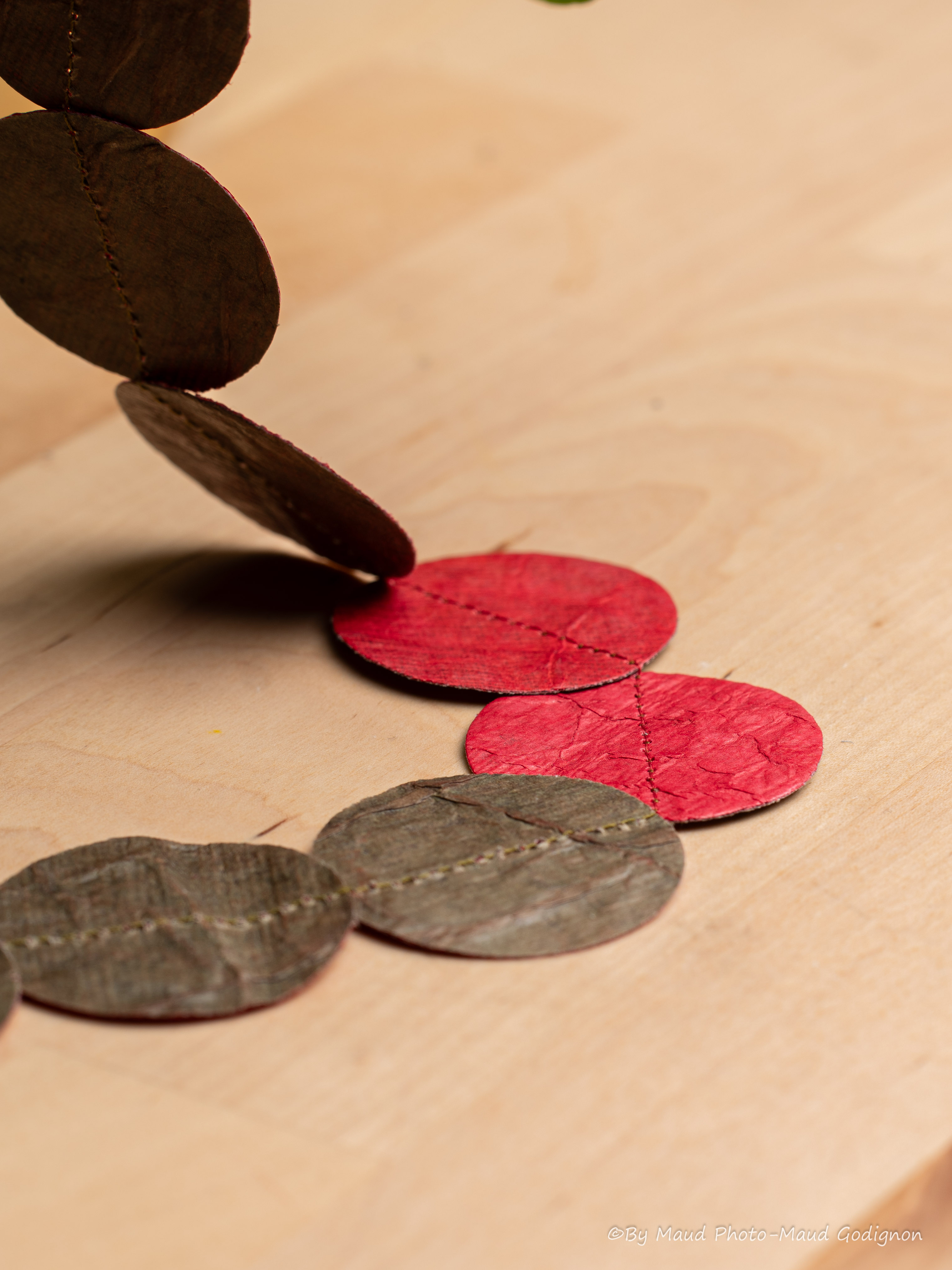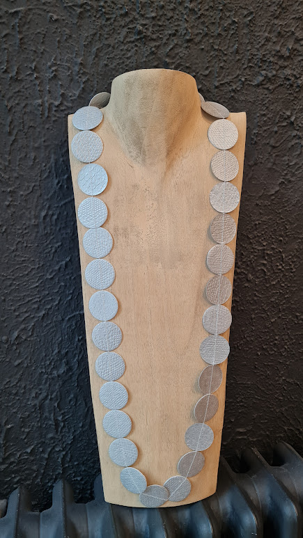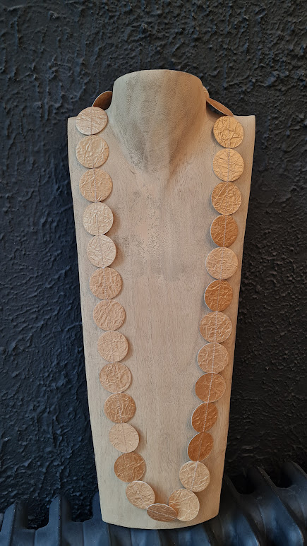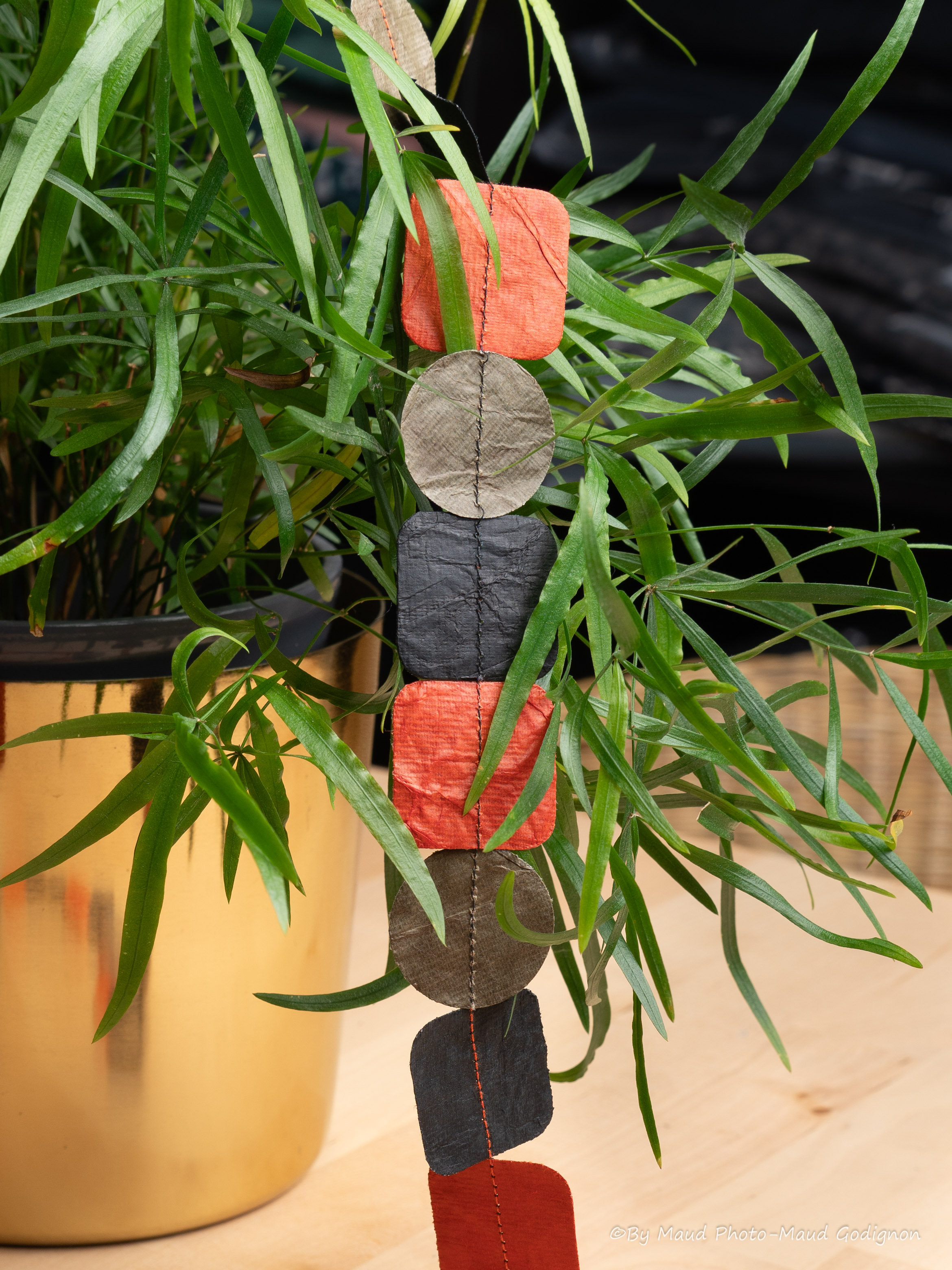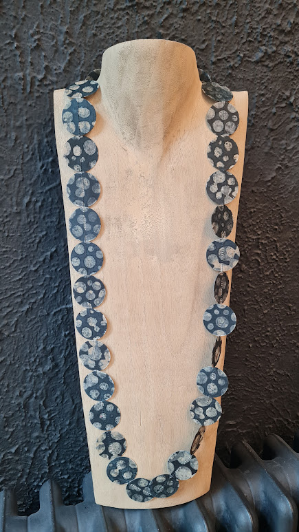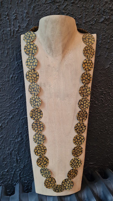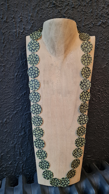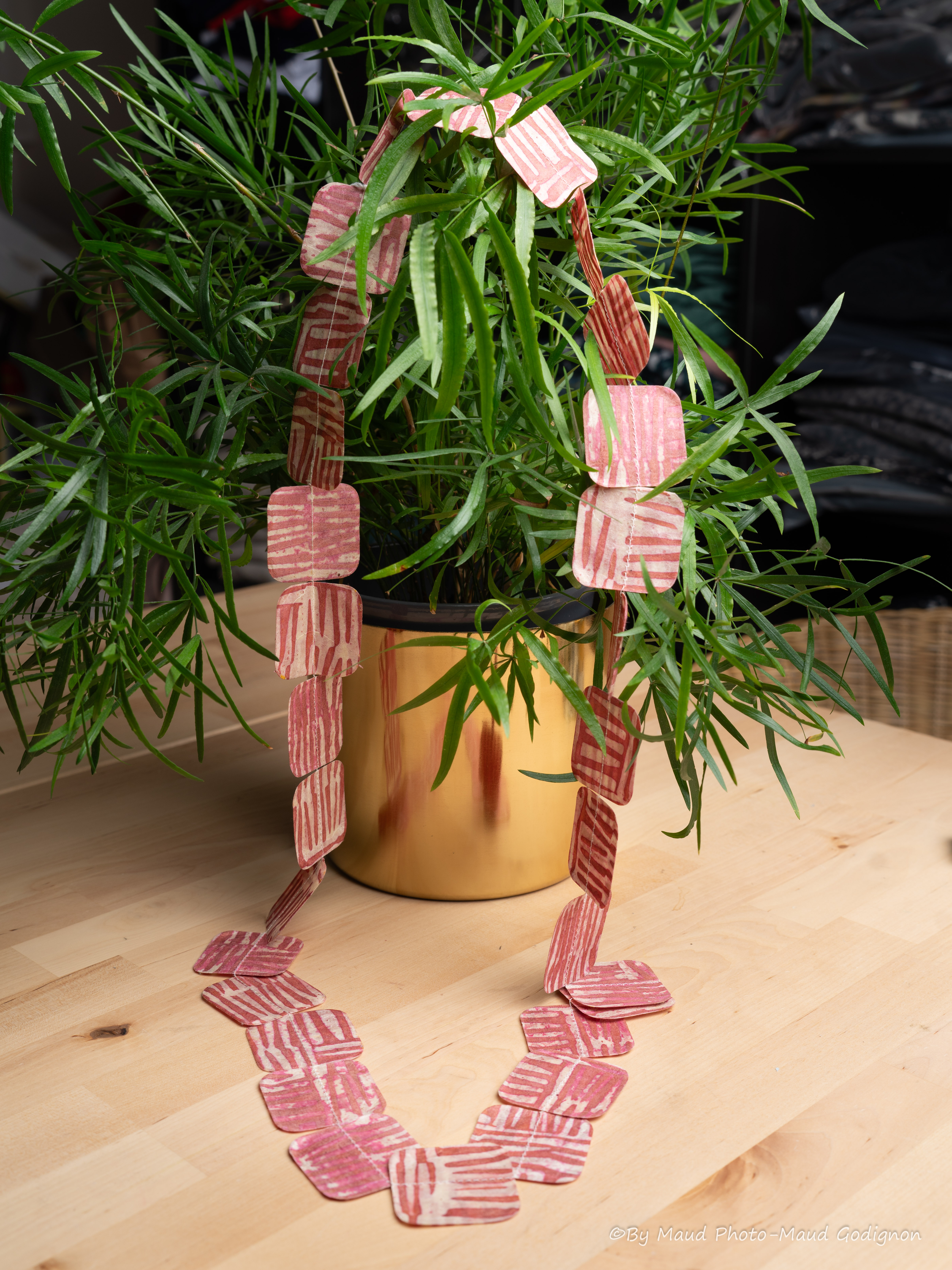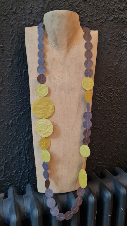 Collier composé d’un rang de ronds en papier imprimé de ronds.