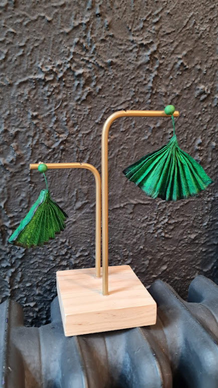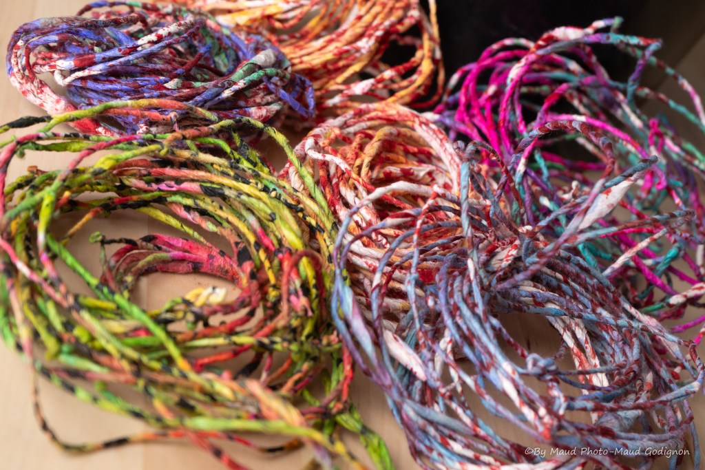 Bracelet multiforme composé de fines feuilles de papier sur élastique.