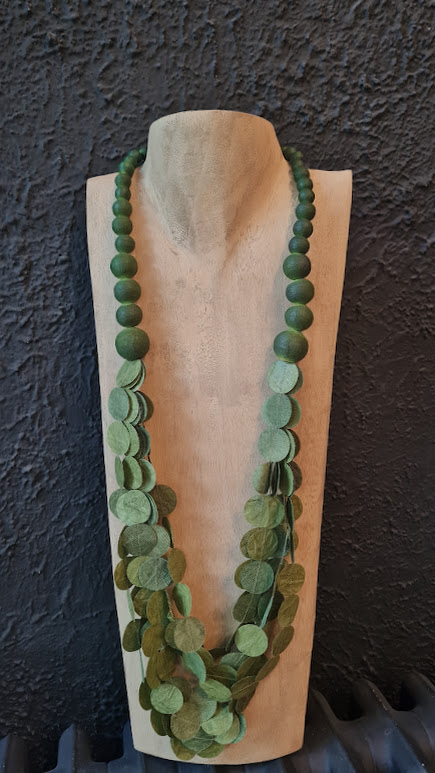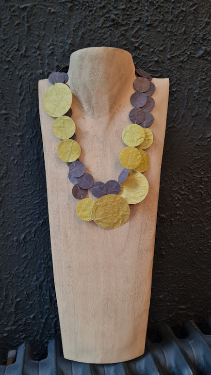Collier composé de cinq rangs de papier, pouvant également se porter en bracelet. (Différents coloris)