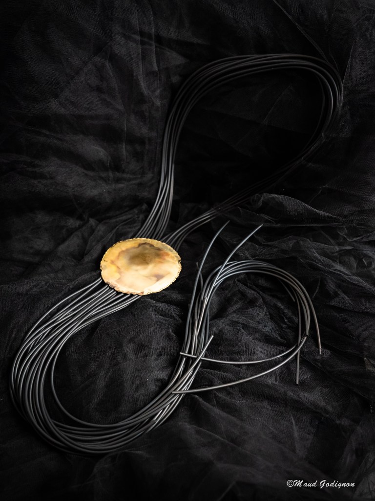 Les matériaux qu’elle utilise pour réaliser ses bijoux peuvent être nobles ou bruts.