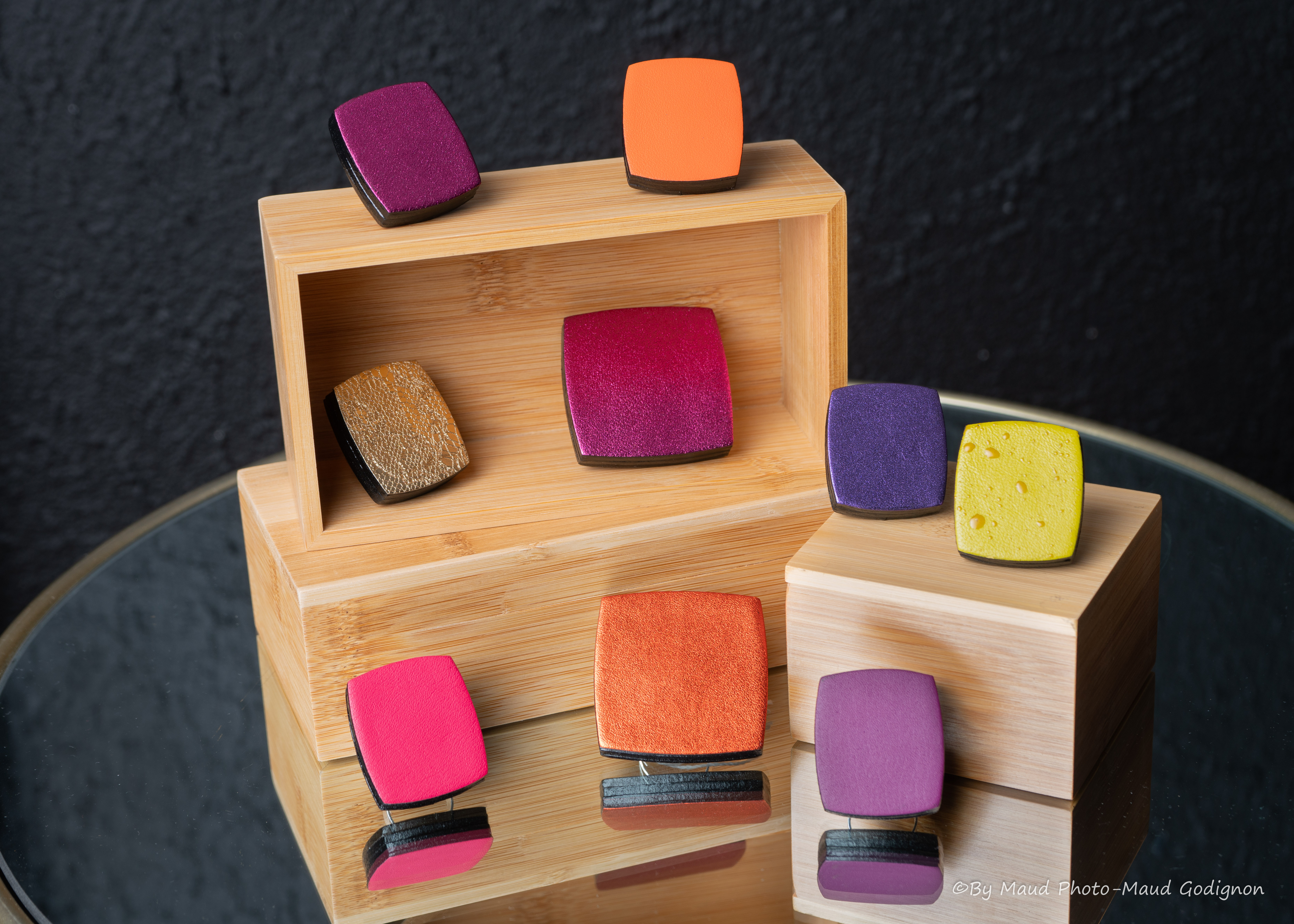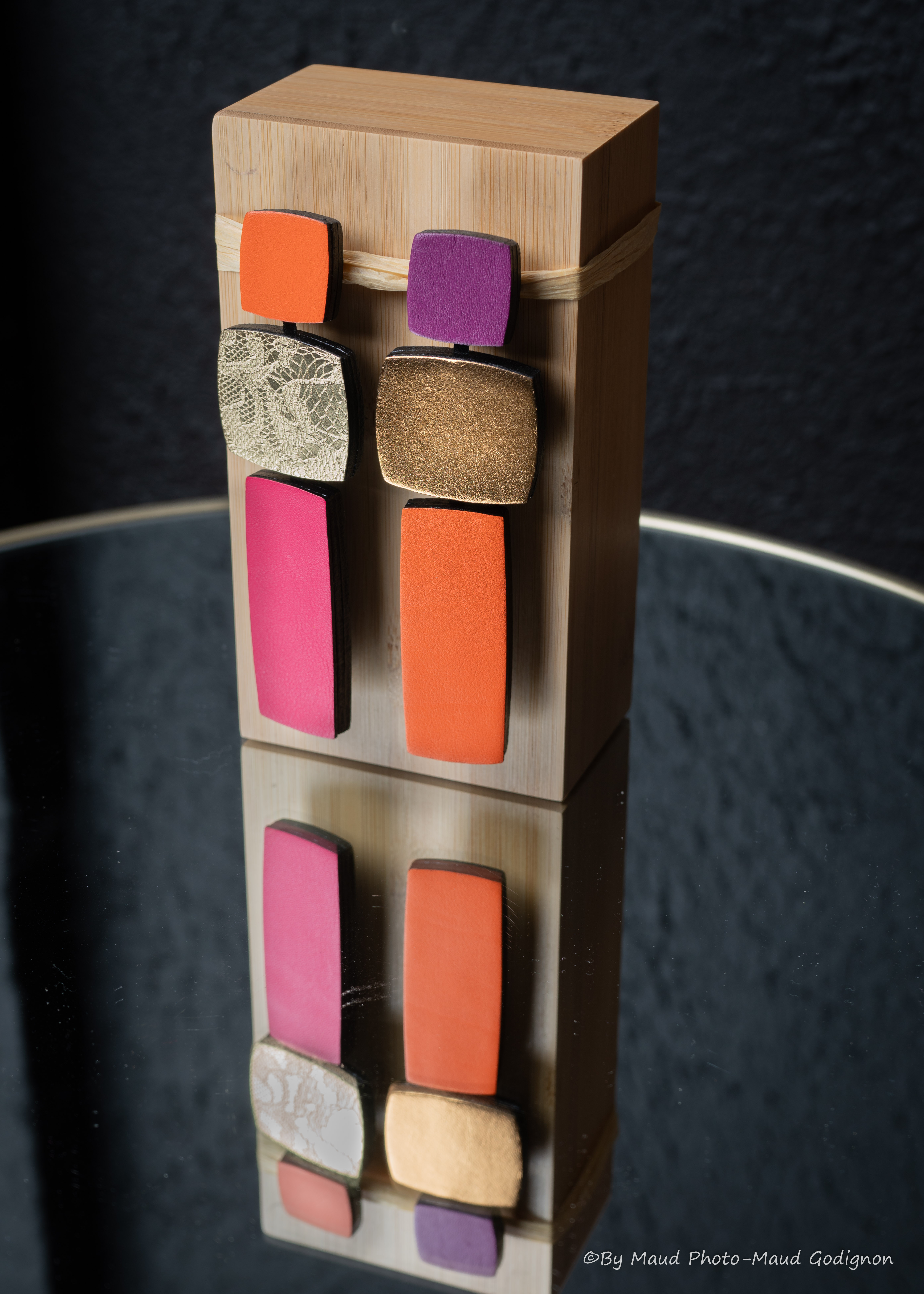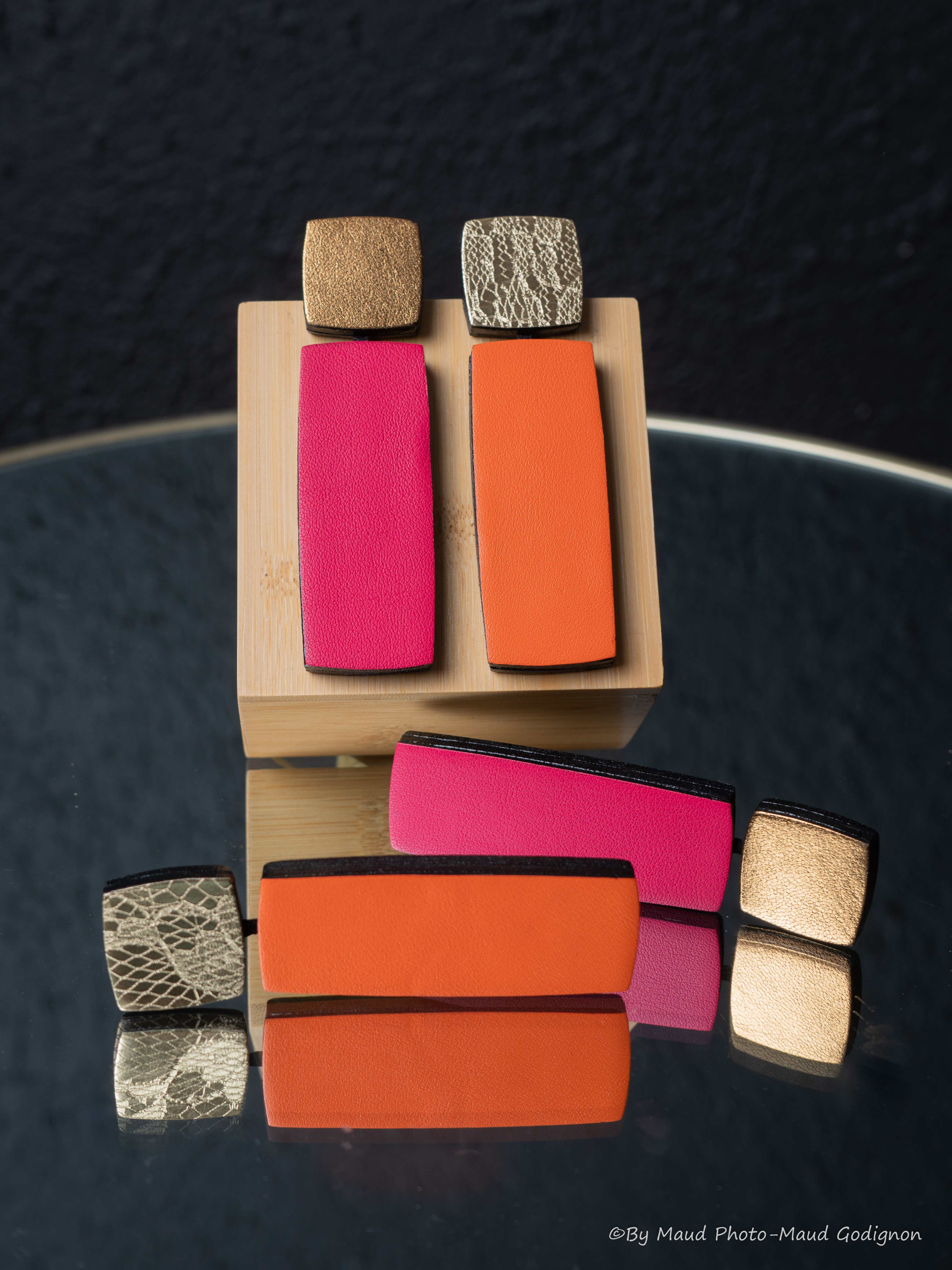 Aujourd’hui basée en Champagne, elle conçoit et fabrique ses bijoux entièrement à la main, en éditions limitées ou en pièces uniques.Les cuirs sélectionnés sont majoritairement des cuirs de veaux et vachettes, d’origine France et Italie.