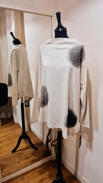 Haut écru imprimé ronds noirs