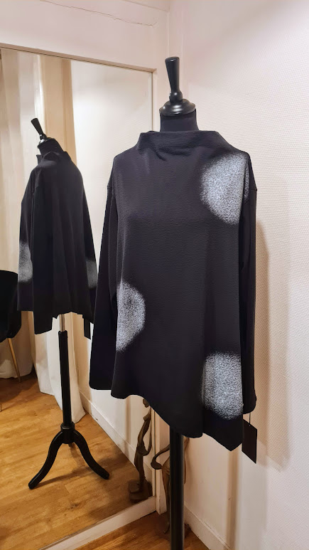 Haut noir imprimé ronds blancs