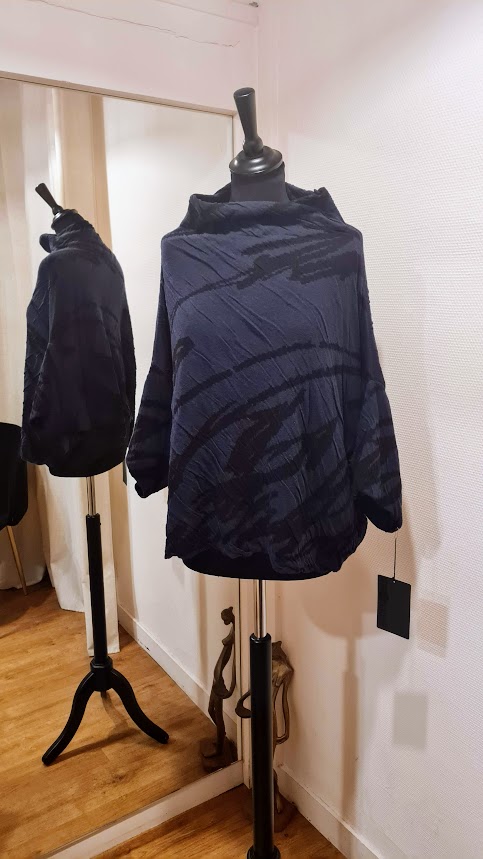 Haut noir imprimé gris/bleu